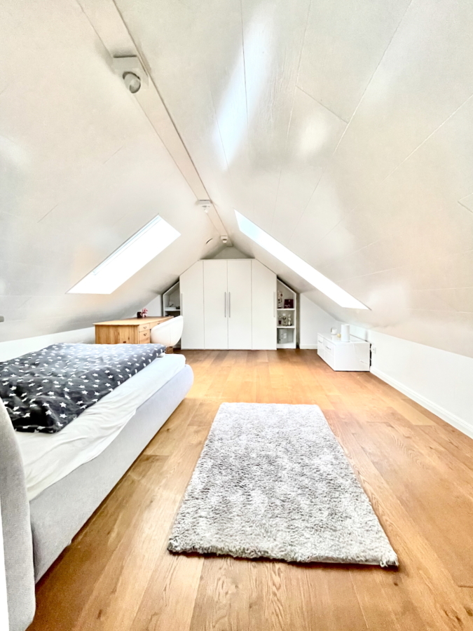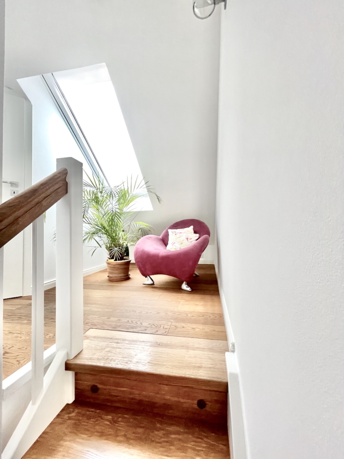 Das Dachgeschoss – mit seinen Panorama-Dachfenstern – ist ein Ort für Kreative, Träumer, Pausenmenschen.