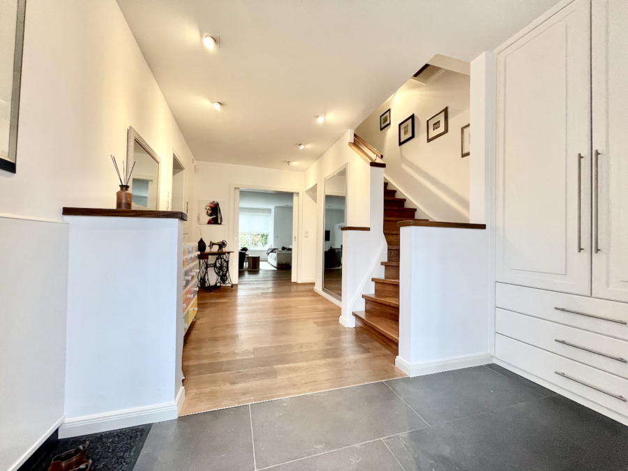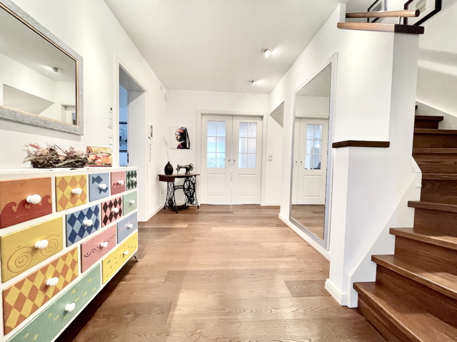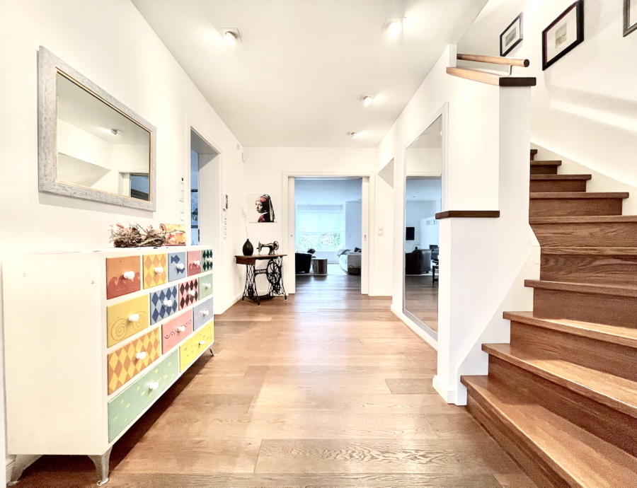 Eine Doppelhaushälfte im Villenstil, geprägt von klarer Eleganz, moderner Technik und dem warmen Gefühl von Geborgenheit, das man spürt, sobald man die Tür hinter sich schließt.