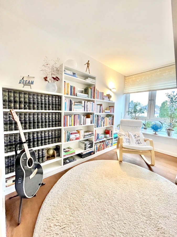 Eine großzügige Bibliothek / Büro, offen, luftig, inspirierend.