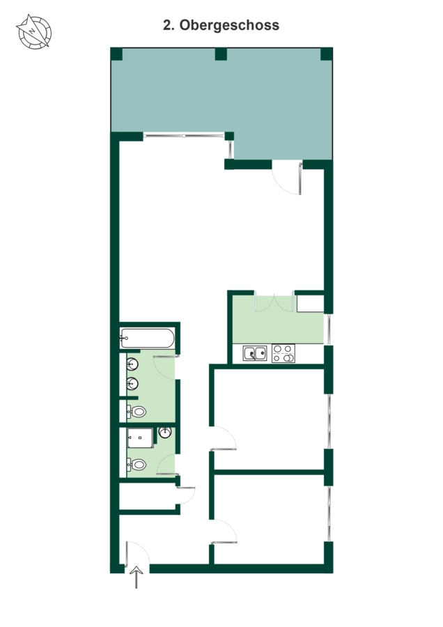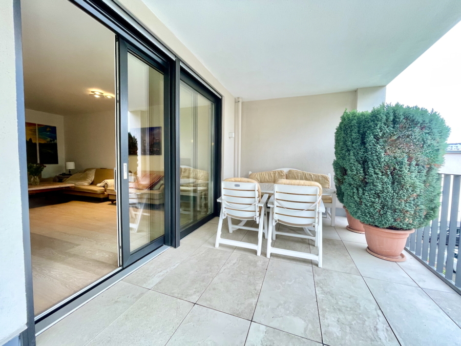 Auf 108,45 m² entfaltet sich eine klare Struktur: Ein weitläufiger Wohn- und Essbereich, hell und offen – mit direktem Übergang auf einen Balkon, der mehr ist als nur ein Außenbereich: Rund 22 m², westlich ausgerichtet, überdacht und geschützt. Ein Platz für Abende in der Sonne, für Gespräche im kleinen Kreis, für Momente, die bleiben.