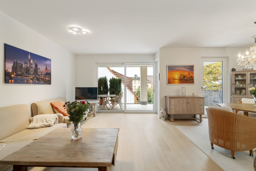 Diese Wohnung liegt in einer gefragten Wohnlage Oberursels – zurückhaltend, aber mit allen Qualitäten, die modernes Leben auszeichnen. Der Westbalkon schenkt Abendsonne und den Blick ins Grüne, während die Umgebung ein urbanes Angebot bereithält: individuelle Boutiquen, feine Restaurants aller Couleur, Cafés mit Charakter.